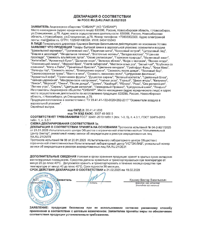 Декларация о соответствии №РОСС RU Д-RU.РА01.В.05215-25
