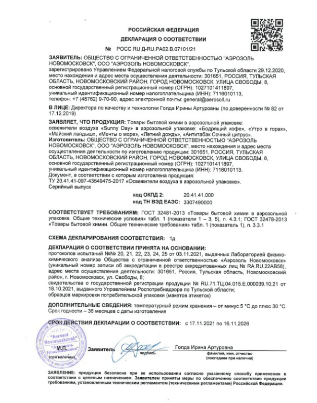 Декларация о соответствии №РОСС RU Д-RU.РА02.В.07101-21