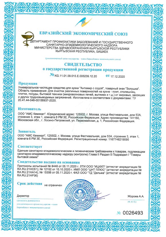 Средство для удаления жира с содой "Золушка" 500мл